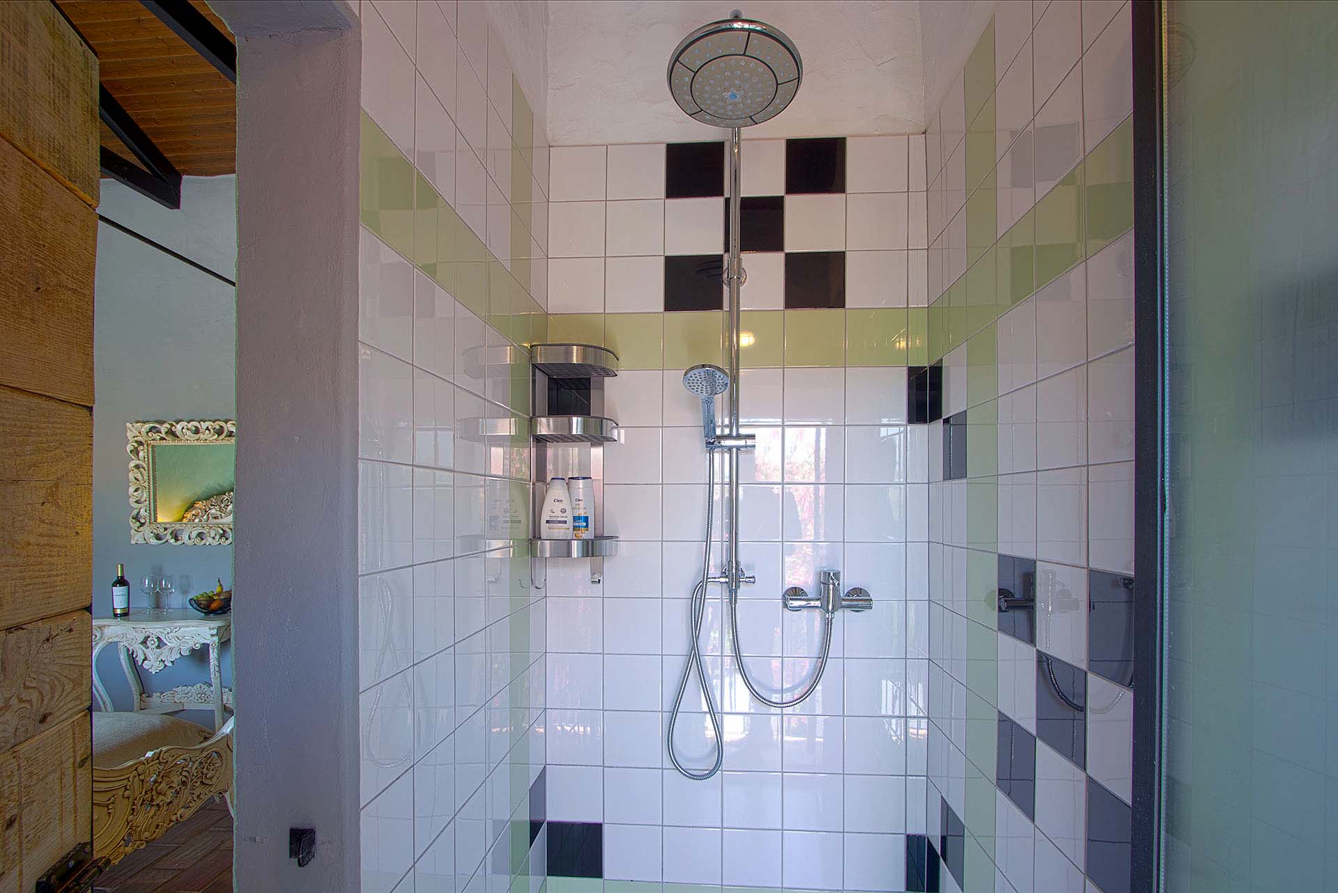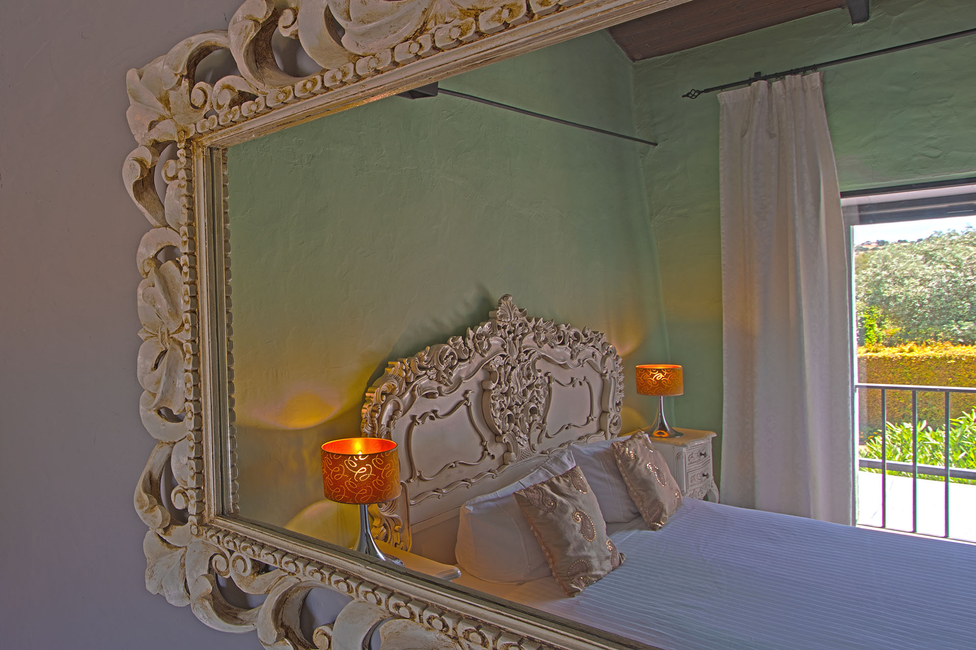 The romantic Bohemian room has a double Queen Size bed. This room can be connected as an extra bedroom to the Vintage apartment. It has a French balcony with beautiful views over the valley and swimming pool. If you like cooking, you can use the communal kitchen and BBQ in the garden. There is also a communal seating and dining area with an honesty bar and satellite TV.